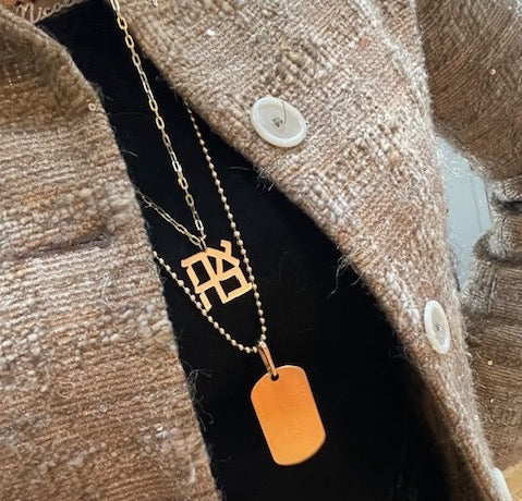 Satin finish with high polish sides and jump ring. Chain sold separately. Classic Cable Chain in Product Shown in Product Image. Recommended Chain (shown on pouches and worn, as well as solo here): Chunky Rectangular Chain 24”.